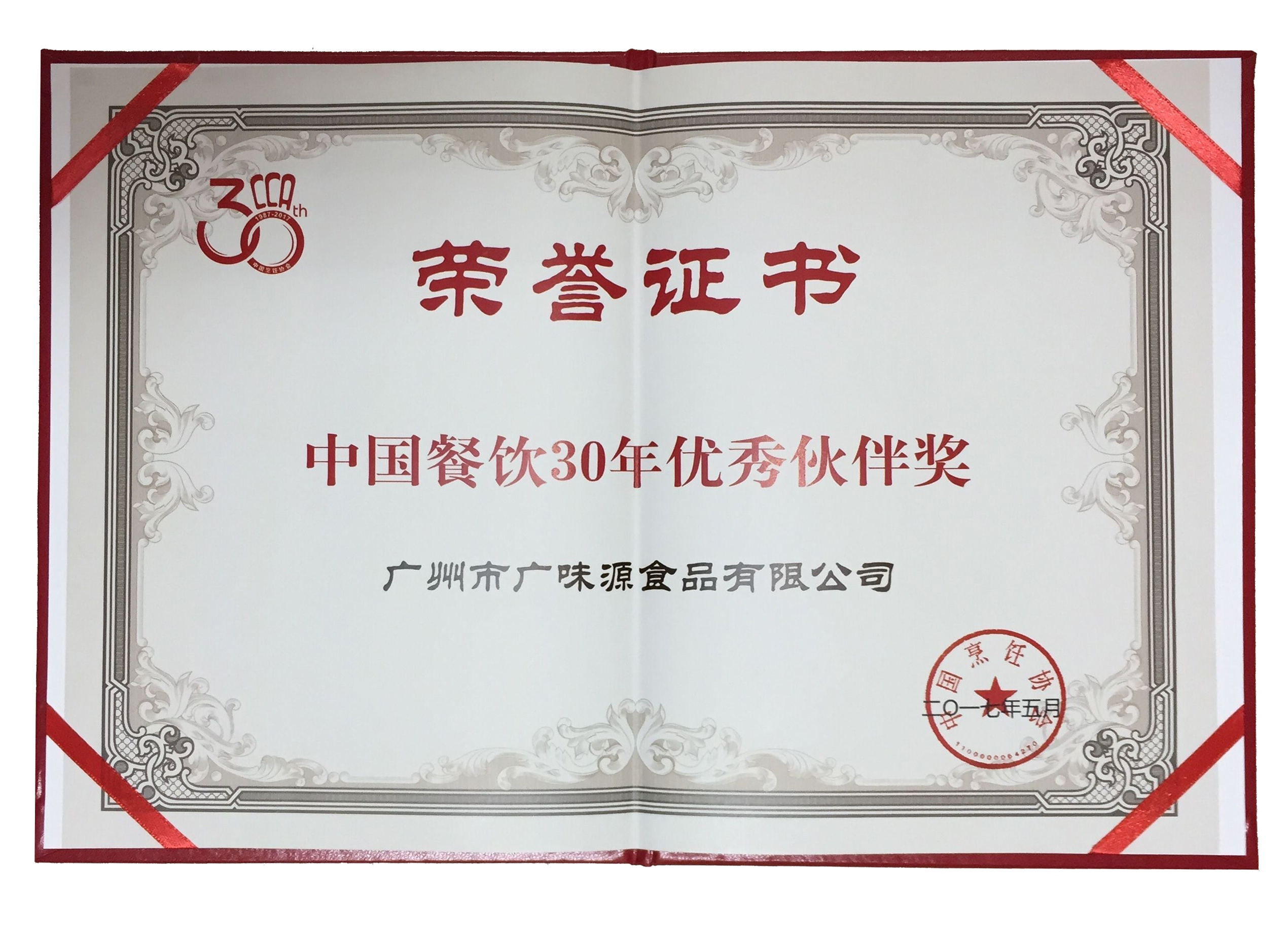 熱烈祝賀我司榮獲“中國餐飲30年優(yōu)秀伙伴獎”