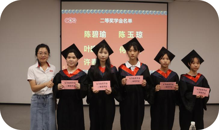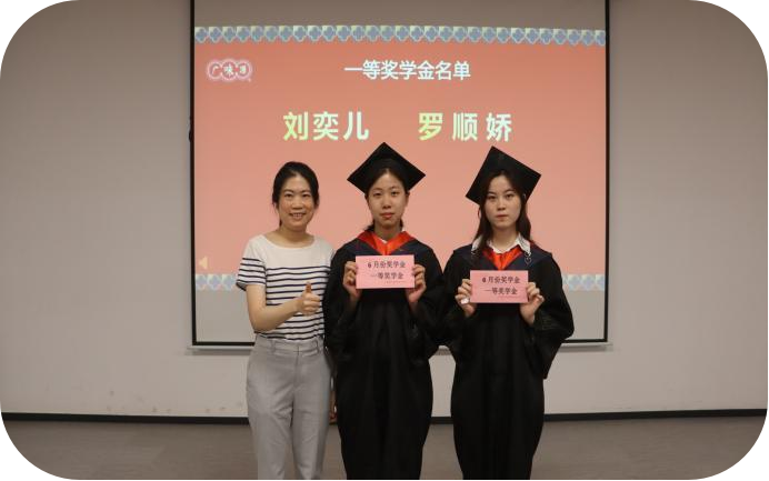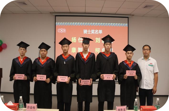 畢業(yè)典禮前廣味源人力資源部施華經(jīng)理與生產(chǎn)部張光良經(jīng)理、生管中心李勝龍經(jīng)理、品管部劉雪瑩經(jīng)理為畢業(yè)生頒發(fā)了畢業(yè)前最后一次獎學(xué)金,為他們的跟崗實(shí)習(xí)劃上圓滿句號。