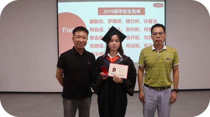 許總經(jīng)理、林主任為2019級畢業(yè)生代表頒發(fā)畢業(yè)證書及勛章