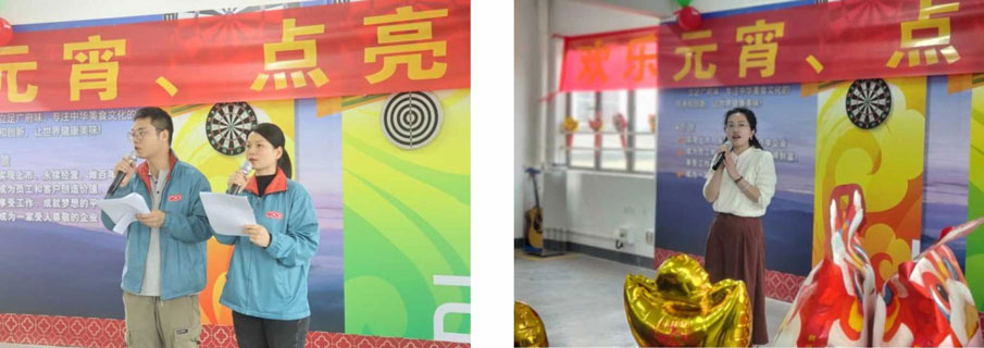 15:00,活動(dòng)在溫馨的開場儀式中拉開帷幕,主持人宣布元宵節(jié)活動(dòng)正式開始,行政部施華經(jīng)理作開場致詞,向全體員工送上節(jié)日祝福,瞬間點(diǎn)燃現(xiàn)場歡樂氛圍。施經(jīng)理在開場致辭中說,今天活動(dòng)的主題是“歡樂元宵,點(diǎn)亮心愿”,元宵佳節(jié)享團(tuán)圓,一碗湯圓福氣圓,飯?zhí)梦绮桶才帕塑浥聪闾鸬臏珗A,祝愿大家生活甜甜美美;在每個(gè)喜慶的節(jié)日里,我們都會(huì)相聚共同慶祝,這是廣味源的文化,今天是元宵佳節(jié),我們在這里以元宵的圓滿和甜蜜為寓意,點(diǎn)亮我們共同的心愿,祝愿公司的未來像滿月一樣光明,生意如萬家燈火一樣紅火,也祝愿所有員工家庭團(tuán)團(tuán)圓圓,甜甜美美。