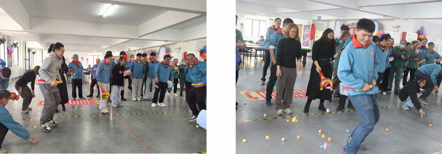 第三個(gè)游戲是《財(cái)運(yùn)滾滾樂》:這是一項(xiàng)沒有任何挑戰(zhàn)難度的小游戲,獲得眾多同事的青睞,一眨眼功夫就排了一條長龍等玩游戲,大家都想試試運(yùn)氣如何,有一名同事恰巧投到“吹爆氣球一個(gè)”,小伙子馬上展示如何吹爆氣球,贏得現(xiàn)場同事們的陣陣掌聲和喝彩聲,這小伙子,勇氣可嘉啊!