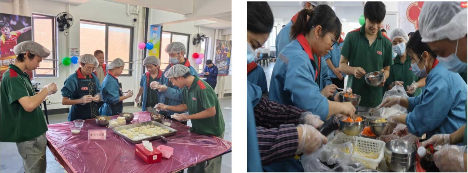 活動當(dāng)天上午,在各部門的通力協(xié)作下,員工文體中心被精心布置得暖意融融,處處洋溢著濃厚的節(jié)日氛圍。行政部早早備齊了豐富的活動食材,不僅有新鮮勁道的餃子皮、鮮香飽滿的精選肉餡、清爽可口的各式蔬菜,更貼心搭配了公司各種特色調(diào)味品。大家親手拌餡、捏餃,將專屬的風(fēng)味與滿滿的情誼包入其中,在歡聲笑語里勾勒出冬日里最溫馨的畫卷。