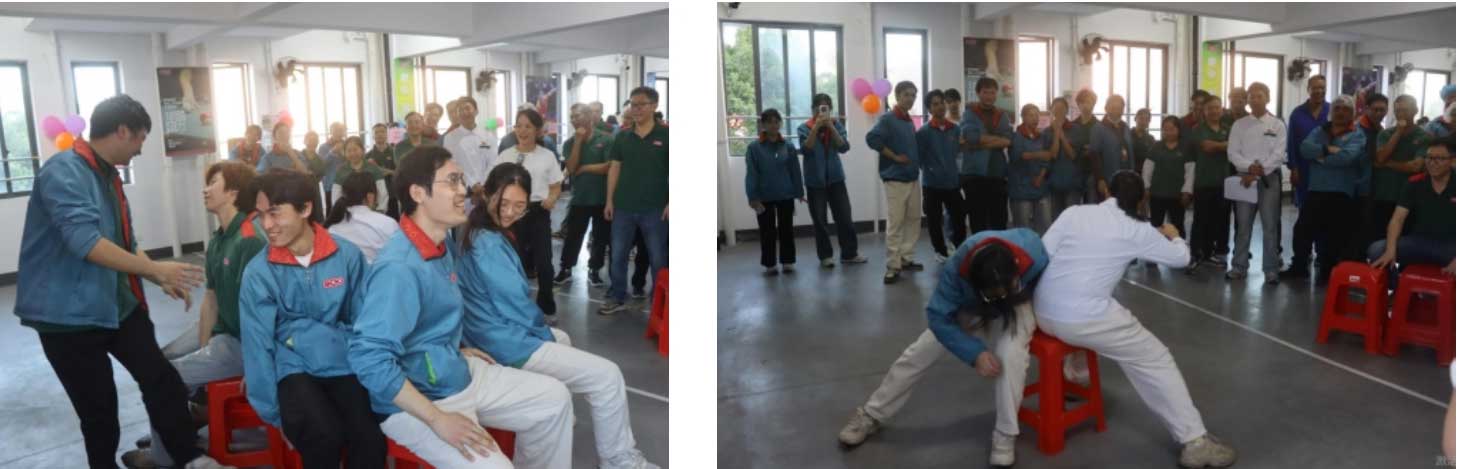 16:25分,今天的最后一個游戲,絕對是“笑點擔(dān)當(dāng)”!“擠眉弄眼”環(huán)節(jié),讓平時嚴(yán)肅的小伙伴們瞬間“放飛自我”,各種奇特的表情層出不窮,引爆全場笑點!看誰是今天的“表情帝”?
