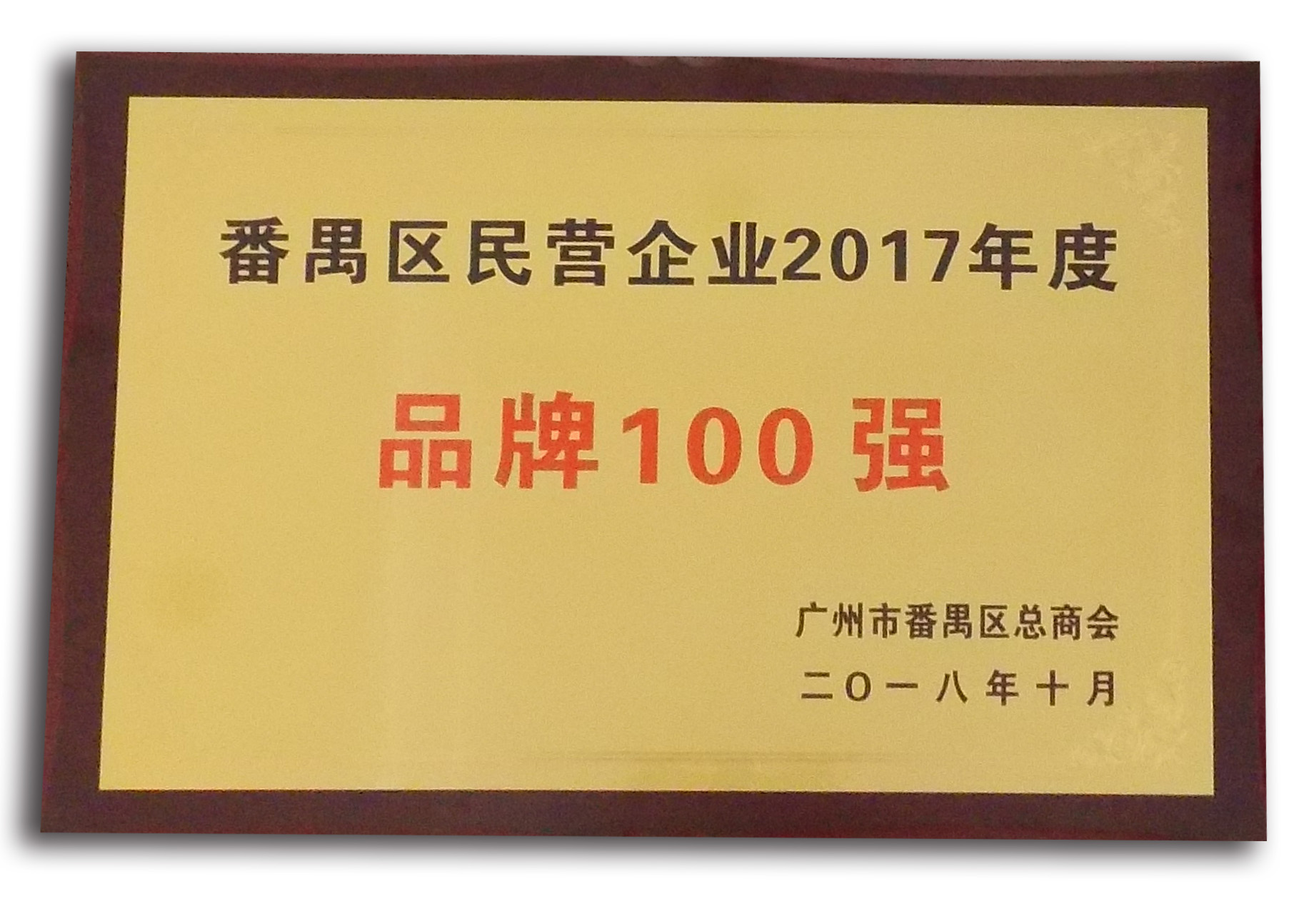 我司評為番禺區(qū)2017年度品牌100強